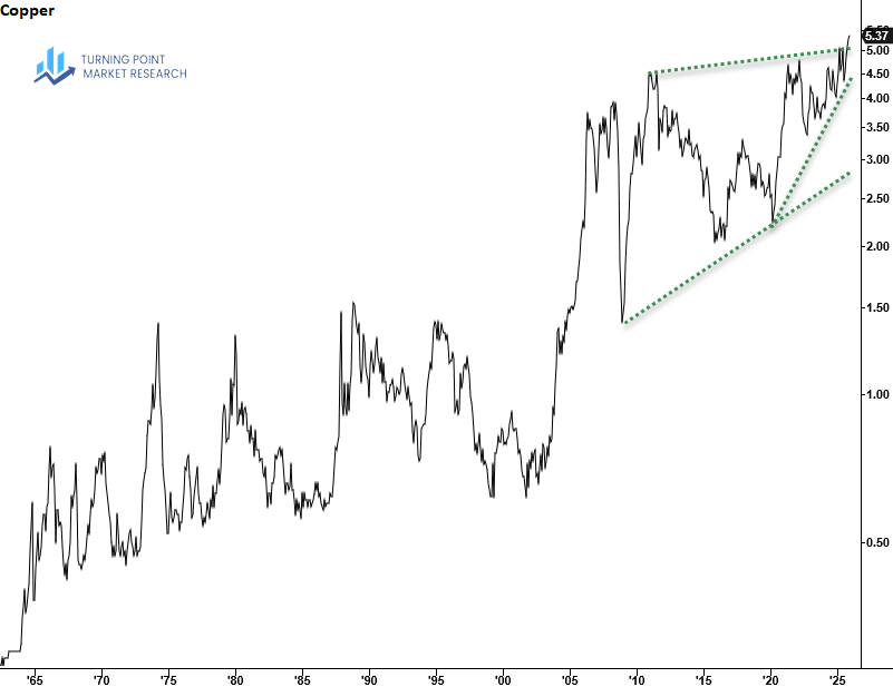 This latest breakout raises the question of whether another repricing is underway. With AI data center construction and global electrification driving demand, the commodity could be at the early stage of forming a higher range, potentially shifting into a $5–$10 band.